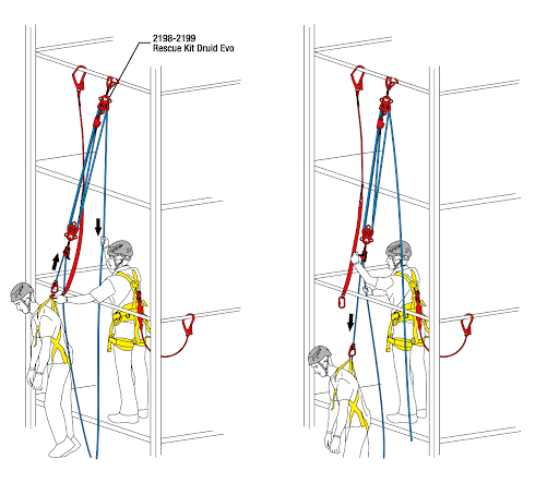 Et klassiske redningssett består av et såkalt 4:1 taljesystem. Det er et sett bygget opp med trinser som gir en utveksling slik at det blir lettere å løfte. Et 4:1 system gjør at når du drar med 25kg så løfter du 100kg i andre enden. Denne utvekslingen forutsetter god rigging og lite friksjon.