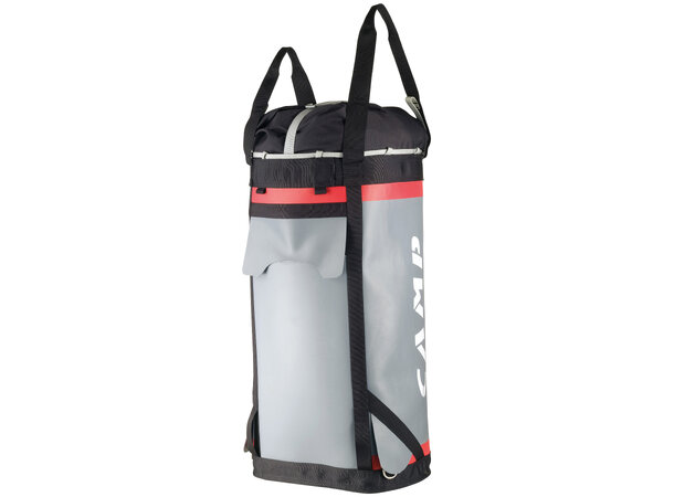 Heisesystemet er asymmetrisk og gjør at når du løfter sekken så flukter den ene siden av sekken med heisetauet. Da slipper du hekting og pes med at sekken setter seg fast i alle mulige utspring. Heiseløkkene er selvsagt så store at de kan håndteres med hansker, votter eller hva enn du har på hendene. På heiseløkkene er det påsydd en kortere løkke som gjør det fint å holde orden når sekken henger på standplass. Robust snorstramming i toppen som må knytes. Fyll gjerne sekken til randen, heisesystemet tåler hele 80kg!