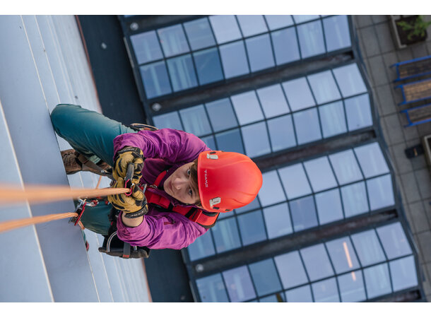Trinsen som fører tauet under oppstigning kan også brukes til heising. Bare heng håndklemma opp ned, legg i tauet, styr tauet over trinsehjulet og trekk. Vi anbefaler at det løftes max 50kg på dette systemet, og det er ikke beregnet som et primærheisesystem for tung last.