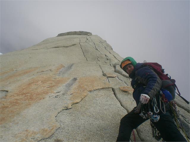“Festerville” på Aguja Standhardt går på eller veldig nær nordryggen hele veien, og etter hvert som vi klatret høyere merket vi at det trakk fra vest. Trekken gikk sakte over til vind, den beryktede vestavinden som kommer uhindret fra Stillehavet før den treffet vestsiden av Cerro Torre, Torre Egger og Aguja Standhardt med sagnomsust kraft. På de siste to taulengdene før fortoppen ble jeg stående og vaie i vinden mens Magnus ledet sin blokk. Det var åpenbart vær på vei inn, men kunne vi klare å rekke toppen før det ble helt krise? Var dette uværet som værmeldingen mente skulle komme om et døgn? Magnus kikket over kanten og ned på baksiden av fortoppen. Ruten går ned i et skar og videre opp en beryktet taulengde på seksertallet med dårlige sikringsmuligheter.