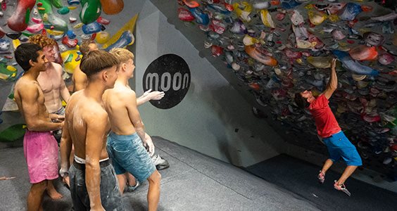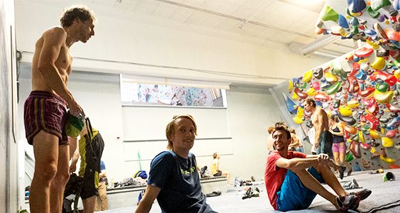 Etter en guidet tur på senteret gikk de til buldreveggen på treningsrommet hvor flere av de yngre klatrerne hadde trening, blant annet CAMP ambassdør Per Ravlo-Caspersen.